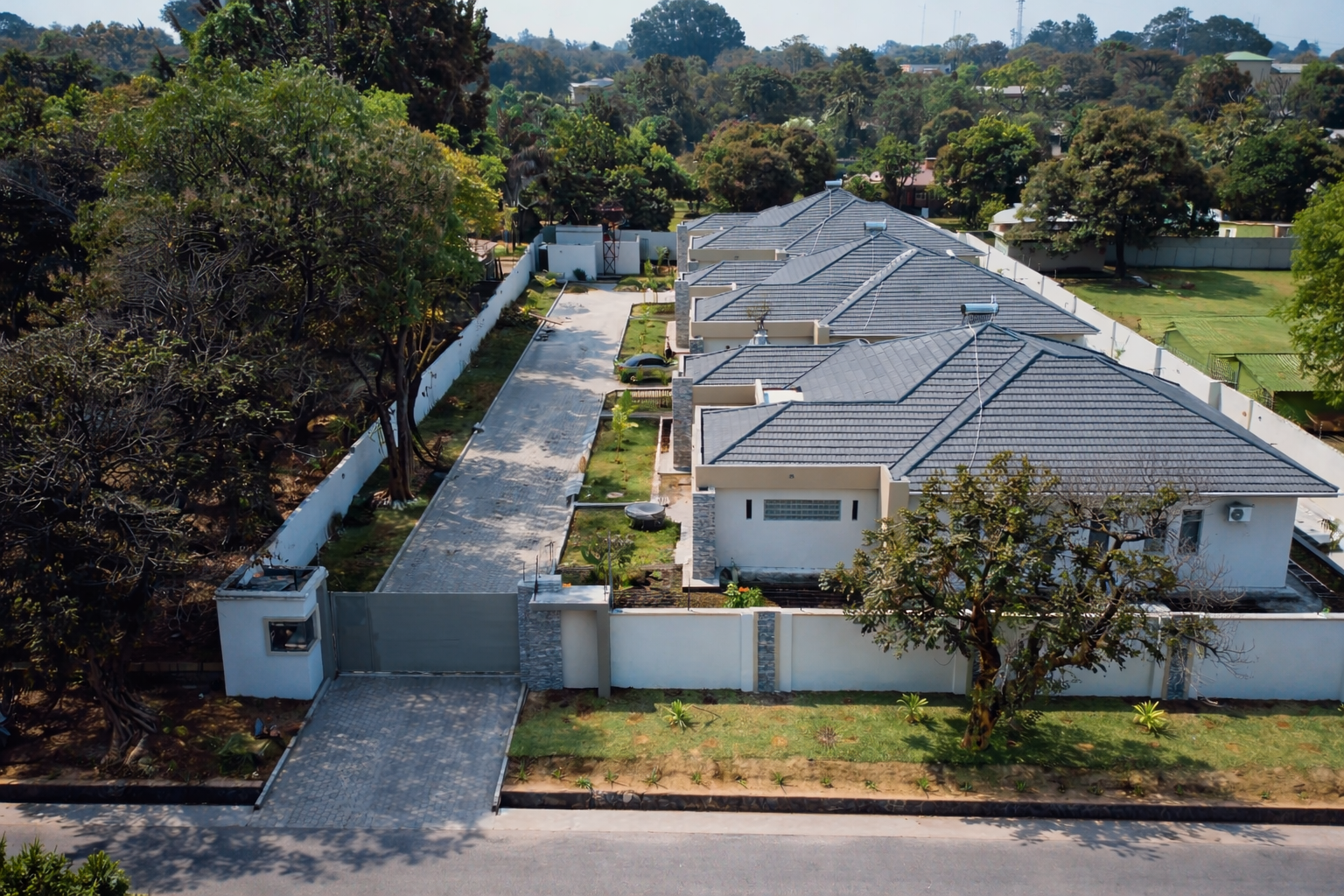 Paris Royal Estate is a secure residential property located in Ibex Hill, Lusaka. In addition to the fully furnished serviced apartments available for short and extended stays, the estate also includes several privately leased residential units occupied by long-term tenants.
